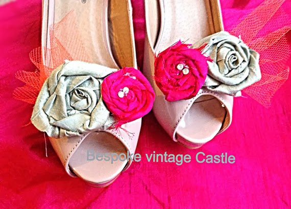Bespoke and chic, these jewelery pieces have been handmade with silk satin fabric,embellished with diamante brass keys lace, tulle and all secured on a goldplated expandable band.